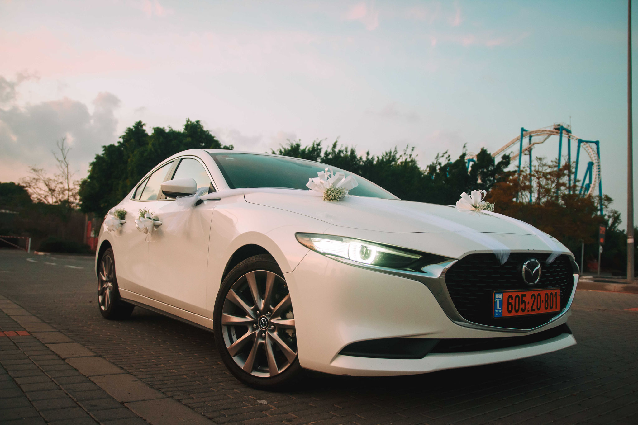 משם המשכנו לצילומים מרהיבים ביופיים ביס פלנט בראשון לציון בגשר הארוך על יד האגם המפורסם, כשממול החתן והכלה גלגל ענק המשקיף ומציץ בתמונה הישר מהסופרלנד. השמיים שיחקו לטובתנו כאילו גם הם הוזמנו לחתונה ודאגו להתעטף בחגיגיות והשמש תרמה לנו אור שהיה חשוב להצלחת התמונות. הכלה והחתן זכו לתמונות זוגיות לצד האגם והעשב הירוק, הגשר החום החליפה השחורה של החתן והשמלה הלבנה של הכלה, זה נראה ממש כמו ציורים מהאגדות. כמובן שבסוף הצילומים חיכה אוטו חדש ומפואר בצבע לבן עם קישוטים כיאה לחתן וכלה , שהסיע אותם ישירות לאירוע, גם כאן הייתי חייב להתערב ולתעד את החתן והכלה מאחורה כשהם צועדים אל עבר הרכב, מה שמאוחר יותר תרם לחלק נהדר בקליפ החתונה
