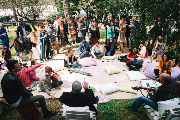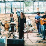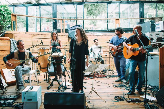 ועכשיו לצילום שתופס את הנגנים והזמרת בצוותא. הזמרת בשמלתה השחורה, והנגנים כל אחד ואחת על הכלי שלו ושלה. אחד על התופים, אחת על הדרבוקה, אחד על גיטרה, אחד על גיטרה חשמלית ואחד על מנדולינה. לכולם מטרה אחת, לשמח את הזוג המאושר, את המשפחה ואת האורחים, גם הם שמחים ונרגשים