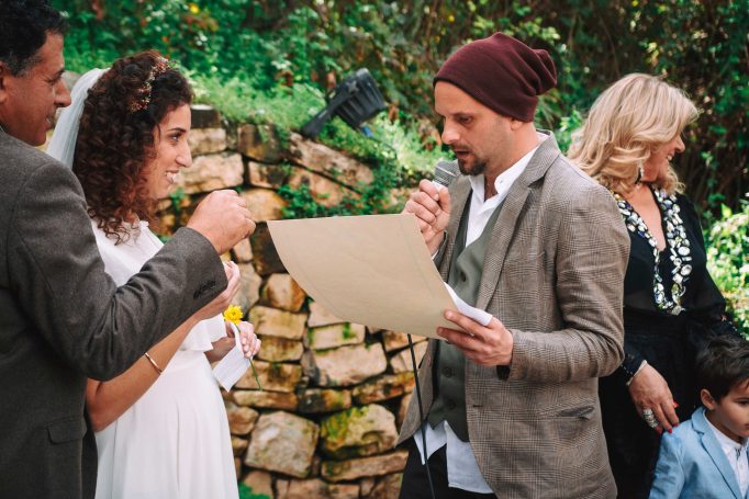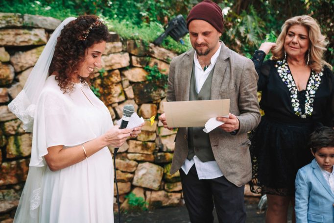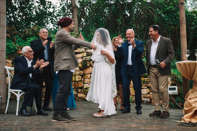 הכלה הרועדת מהתרגשות ממשיכה לקרוא בקול ובחרתי לשלב גם צילום מרחוק על מנת לתפוס רגע זה ולהראות בתמונה את כל המשפחה: ההורים והסבא, שותפים למעמד, היא איננה קוראת זאת רק בעבור בעלה, כל המשפחה מקשיבה, כולם נוכחים וגם הרב. זה הזמן בו היא שמה את בעלה לעתיד במרכז ומצהירה על אהבתה אליו