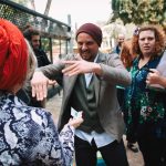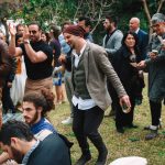 הגיע הזמן לשמר בזיכרון עבור הזוג המאושר גם את הנגנים והזמרת אשר מפעילים ומתפעלים את הקהל השמח והנרגש. אחד הנגנים עם חולצה כחולה עומד ברחבת הריקודים ומתערבב עם הקהל הרוקד, מכניס הוא אנרגיה חדשה . בחרתי לצלם את אחד האורחים נצמד אליו ומפתחים ריקוד מיוחד משלהם