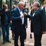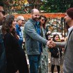 החתן ממשיך להסתובב בין האורחים, הפעם תפסתי אותו בשיחה יראת כבוד עם כמה מהם. ידו האחת בכיסו וידו האחרת לוחצת את ידו של האורח היקר. שני נשים שחזרו מהבופה וצלחת בידם משוחחים עמהם