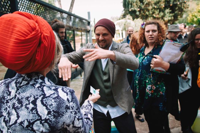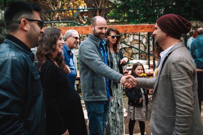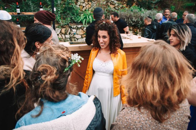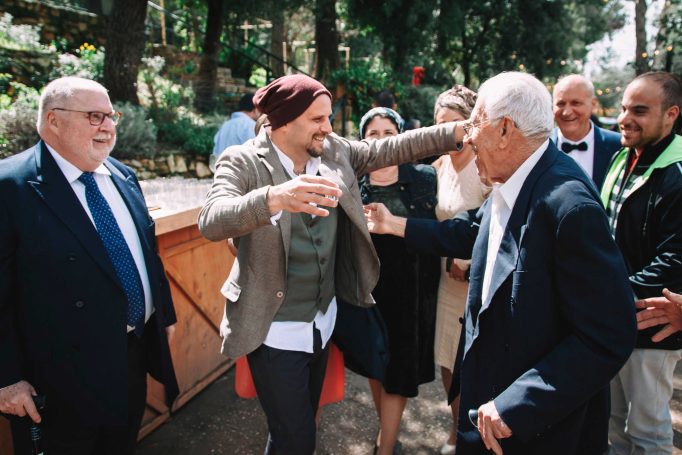 המקום מתחיל להתמלא. האורחים והמשפחה מדברים זה עם זה, משתובבים, כולם בייחד, באותו החיבור, באו לשמח חתן וכלה. קבלת הפנים מתחילה ועימו גם הבופה. וזה הרגע הכי מתאים לזמן לחיים – החתן, הפעם עם כובע הבורדו על ראשו, עושה לחיים עם האורחים. האווירה משוחררת, מחשמלת, האורחים נהנים. כולם מחויכים ומאושרים. האורחים חלקם לבושים יותר רשמי וחלקם ספורט אלגנט באו מכל קצוות הארץ לתת כבוד ולשמח חתן וכלה ונותנים את ברכותיהםהאוויר ירושלים, הטבע הכפרי, החתן והאורחים וכוס הלחיים אשר בידם. רגע אשר החתן והאורחים ירצו לשמור בזיכרון – השמחה של החתן, שמחתם של כולם