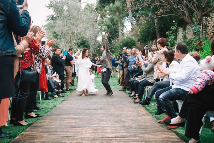 הצעידה לעבר החופה, איננה מהירה. הכלה והחתן לוקחים את זמנם, אף בוחרים להשתובב להם. באחת מהרחבות ישנו עיגול מאבנים ברצפה, החתן והכלה נעמדים להם שם במרכז, הכלה נשענת ימינה על הגבר שלה. ואני עומד ומצלם, החיוך, המבט הנרגש, ההשתובבות, רגע שלפני הטקס המרכזי. חלק מהאורחים והמשפחה אף הם התלהבו מהעיגול המרוצף, נעמדו במרכזו וביקשו שאצלם. כולם מחויכים ונרגשים ורוצים צילום כמזכרת המתעדת אירוע נהדר זה. אירוע שזוג טרי נכנס בברית הנישואין