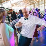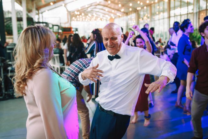 אחד האורחים תפס את תשומת ליבי המיוחדת שכן מרבה הוא להשתובב ולהיות מורגש על הרחבה עם תנועותיו המיוחדות. צילום תקריב זה שהוא עם עניבת הפרפר אשר לו, רוקד בדרכו המיוחדת ליד אשתו
