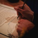 רגע של החתימות מגיע, ובצילום זה התמקדתי שוב בשלושתם, הכלה שהיא העיקר, הרב שהוא המגשר, והבעל. הכלה חותמת על הכתובה. בהמשך צילמתי ממבט מעל את הכתובה והתמקדתי בחתימה וביד האוחזת בעט. הצילום הבא המשיך את קודמו והפעם בזום יותר קרוב התמקדתי בכתוב המקנה תוקף לכתובה "והדבר שריר, קיים וחתום" על מנת להמחיש את חשיבותו ורצינותו של האירוע